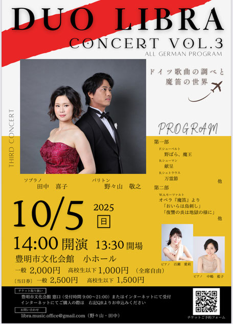 ソプラノ歌手田中喜子とバリトン歌手野々山敬之のHPです。